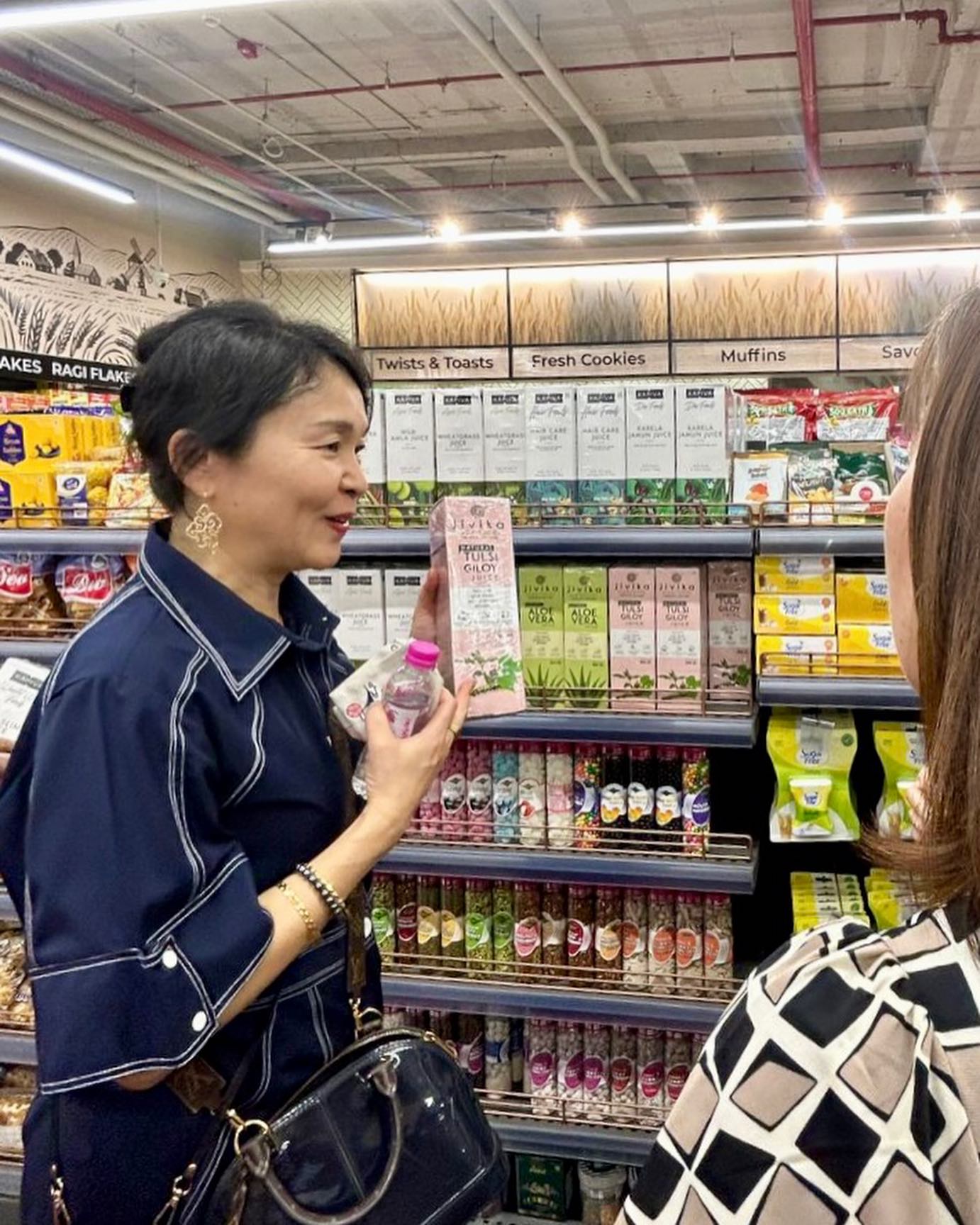 ……と、要約すると堅苦しい印象だが😅 このあたりをわかりやすく説明した後、スーパーマーケットの探検開始。午前中とあって、祝日ながらも人は少なく、広々とした店内をゆっくりと巡る。みなさんからの質問に答えつつ、わたしのお勧めの商品などもあれこれと紹介。気づけばあっというまに2時間が経過。そこからイタリアン・レストランでランチ。わたしはマッシュルームとクリームのフェットチーネを(クリーム&塩分控えめで)注文したのだが、パスタも味付けも、想像以上においしかった。