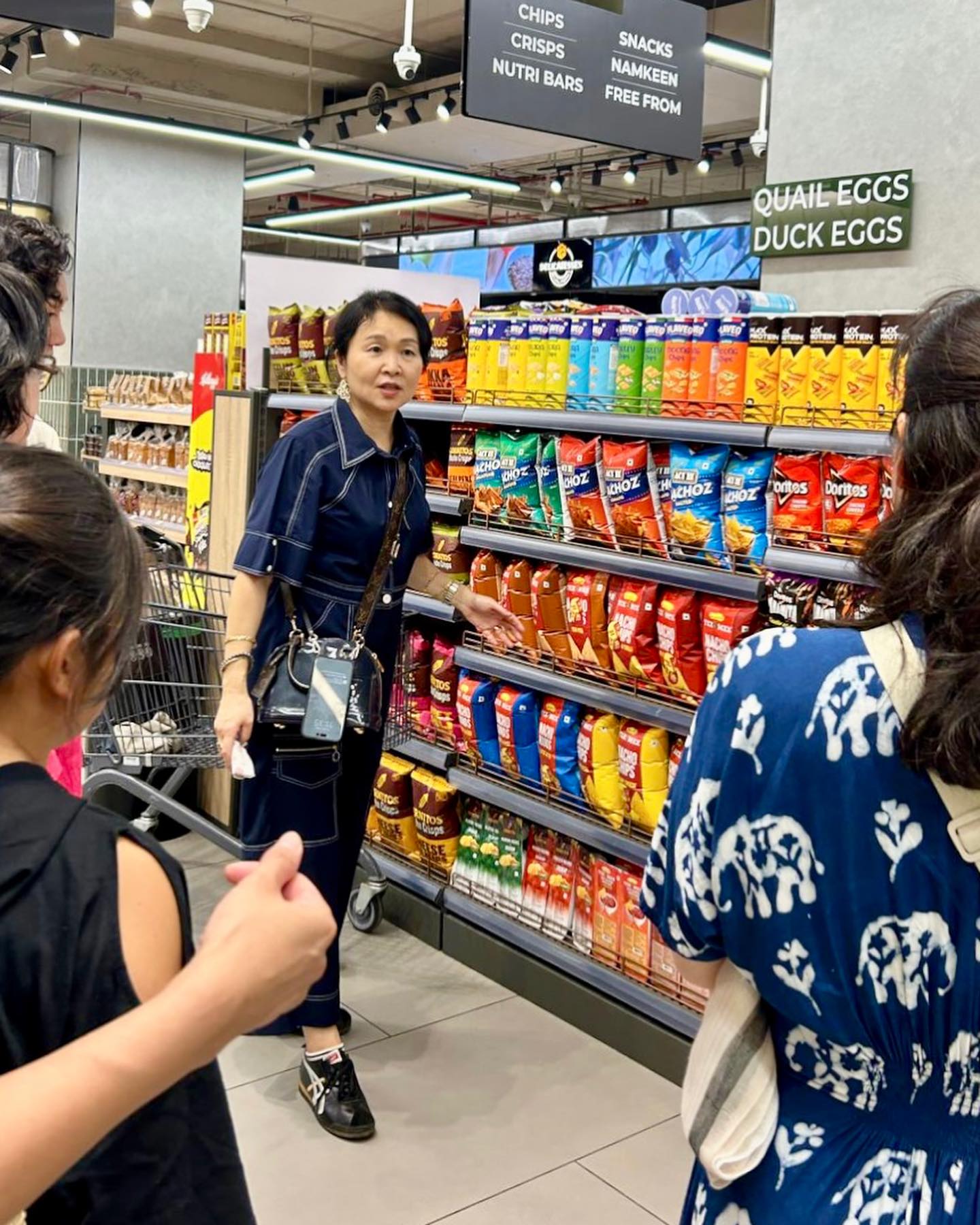 店舗巡りは、フロアごとに攻めていく流れに。ファッション、コスメティクス、ジュエリー……と、あらゆるジャンルの店が並ぶ中、特筆すべき店のバックグラウンドや特徴を次々に紹介、お勧めのブランドは店内に入り、商品など具体的に説明する。今回は、途中で自由解散としていたので、子どもたちは早い段階で離脱かな……と思いきや、10歳のお嬢さんが好奇心旺盛で、スーパーマーケットでもコスメティクスのショップでも、なかなかに的確なコメントを発していた。大人もさることながら、子どもたちが偏見なく審美眼を養っている様子を見るのは、非常にうれしいものだ。