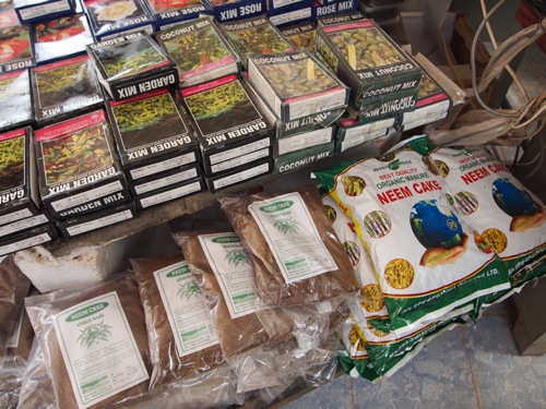 マンゴーを堪能した後は、植物園内のナーサリーへ。オーガニックの肥料や芝生の薬などを購入する。