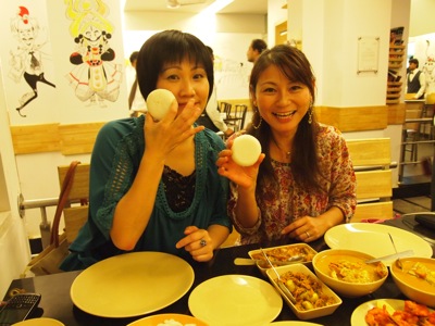 さて、店に到着したら、U-KO隊員が、すでに到着していた。日本から帰国したばかりの彼女、日本で食べ過ぎて増量したと言いながらも元気そうだ。