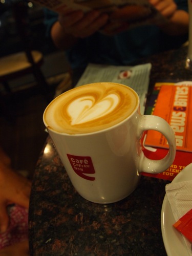 CAFE COFFEE DAYで、わたしとPAKAKO隊員は、オーソドックスにカフェラテを。