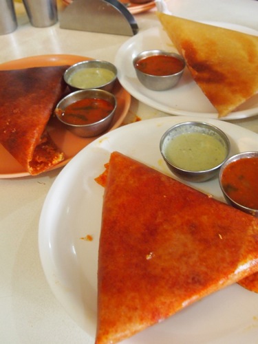 3種類のドーサはカリカリでフィリングはまったりねっとり、さすが老舗、完成されてます。いついっても混んでいるだけあるなあ。