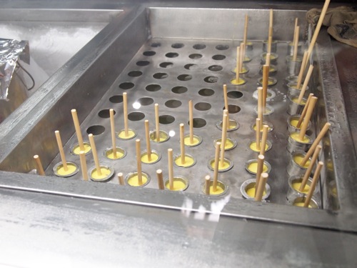 これは基本、街路の屋台スナックであり、屋台の前で、店の人に次から次へと注いでもらって、椀子そばよろしく、一口でがふがふと食べるのが「正しい食べ方」である。