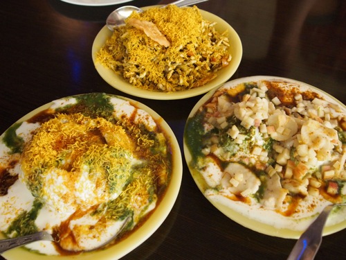 その上には、しかしタマリンドやミントのチャトゥネソース、ダヒがだばだばとかかっており、味付けは同じ。