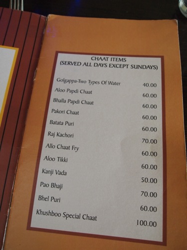メニューには、夫の故郷、デリーを訪れる際に食する、なじみのスナック類の名が散見される。