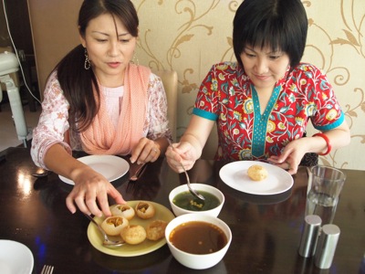 ゴールガッパ(南インドでは”パニプリ”)は、とても軽く爽やかな味のスナックなので、日本人の口にはあうと思う。