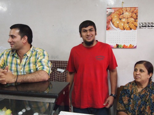 右下の赤いシャツのお兄さんが、その店長さんだ。右は母親。左はお兄さん(店を継がなかったのか?) ともあれ、家族経営の店である。