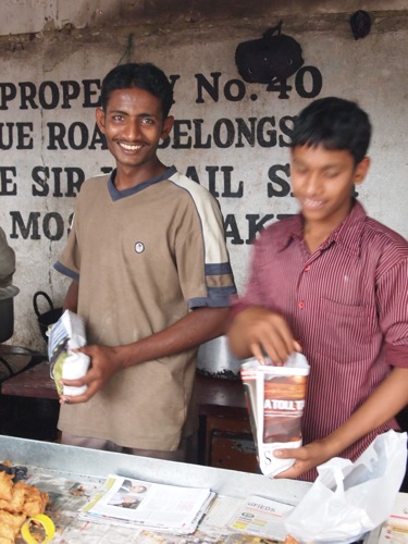 右上のお兄さんは、ビリヤニ(炊き込みご飯)をパックに詰めているところ。