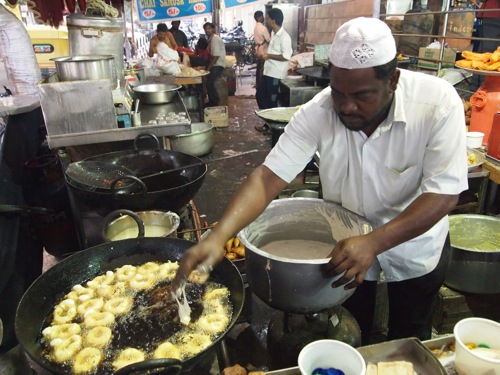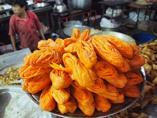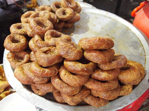 まずは露店の通りをざっと歩いて写真撮影をすませ、そのあと、スナックを購入して持ち帰ろうと思っていたのだが、揚げたての魅力に、いきなりやられる。