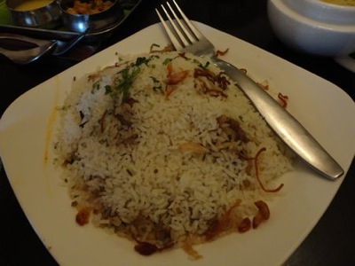 マトンビリヤニは、なんとも上品な風味で、通常の「脂ギッシュさ」がないところが、大人の女性にはうれしいのである。