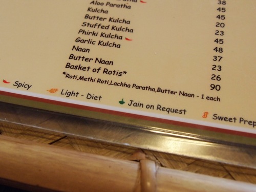 この店。北インドの「田舎料理」の店らしい。天然のスパイス、素材だけを用いた、健康的な料理を供するとの案内がある。これは楽しみだ。
