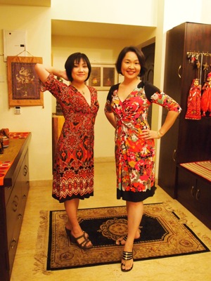 当たり前だが打ち合わせたわけでもないのに、やったら似たコンセプトの服を着ている。ちなみにわたしは、ニューヨークのBloomingdalesで購入。U-KO隊員は、バンガロールのガルーダモールで購入……。