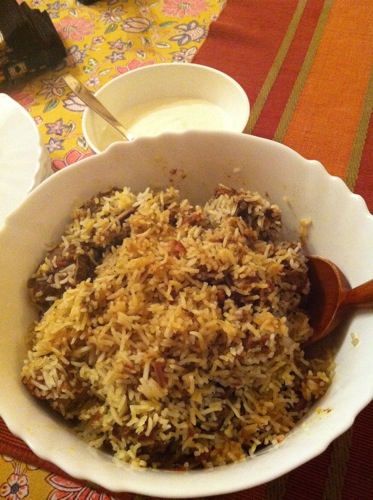 で、このビリヤニがなかなかの出来! スパイス遣いが繊細で、日本人の味覚にも合う上品な風味。インドでは初めて作ったとのことだが、いい具合にでき上がっている。インド人なマイハニーも喜んでいた。