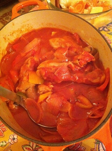 それを、土曜の夜、拙宅で開いた宴用に、調理してみたの図である。一晩マリネしたあと、オーヴンで焼いた。上の写真は、下ごしらえで半分加熱した状態。