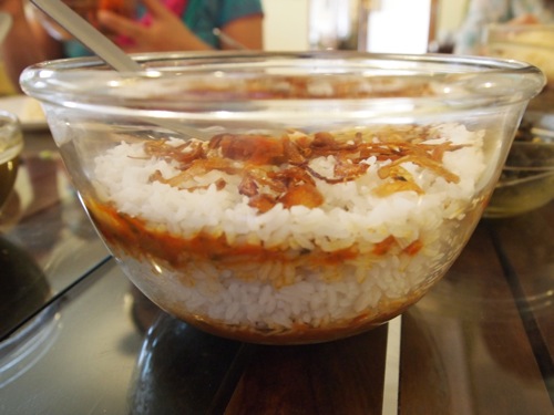 これは、今回初めて試したエビの炊き込みご飯。具が層になっているのを、かき混ぜて食す。いい具合に味がしみ込んで美味であった。