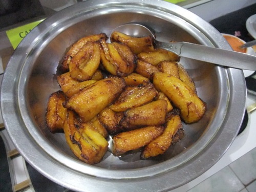 甘酸っぱいプランテーションバナナや、オクラや玉ねぎのフライ、ポテトやナスのソテーなど、付け合わせ的な料理も味わい深い。