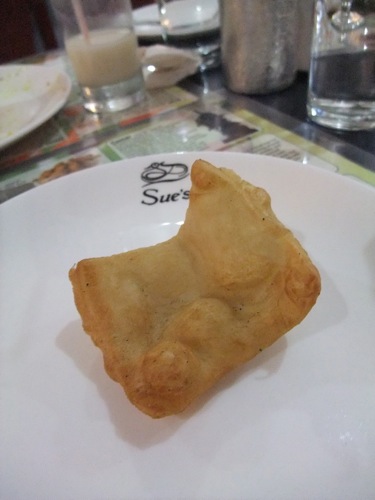 食事が終わった頃、揚げパンが出されていたので、デザート代わりに食す。インドの揚げパン、プーリーと同じような味である。