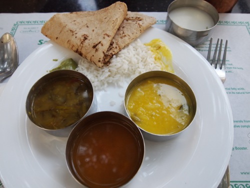 バンガロール市街南部に、Sanjeevanamというアーユルヴェーダの診療所がある。そこに隣接されたヴェジタリアンレストランが、アーユルヴェーダの処方に則(のっと)った料理を出すらしいとのこと。