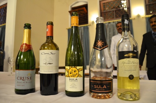 赤白、スパークリングなど、Sulaのワイン以外も含めて、5種類のワイン。