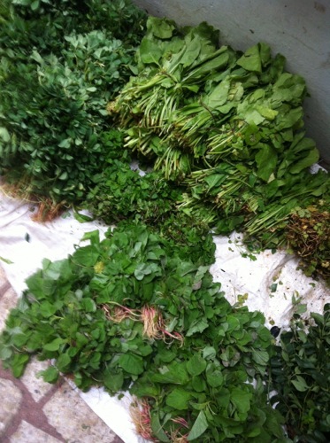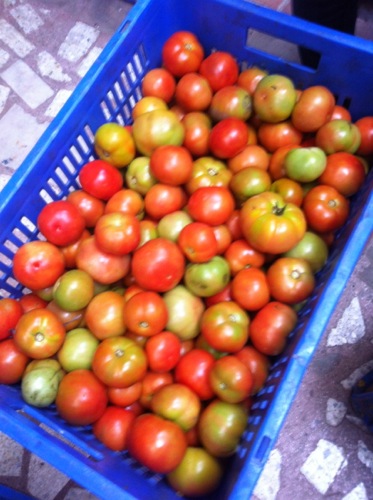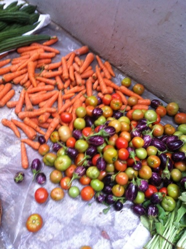 バンガロール近郊の農家から市内へ運ばれて来る新鮮野菜。