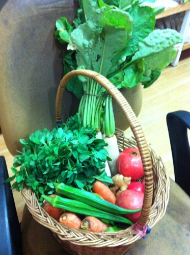 収穫したての、新鮮なオーガニックの食材を、