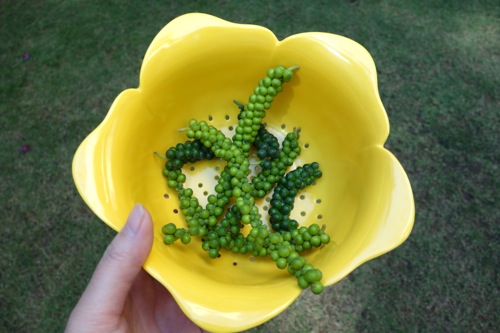 それは興味深いとばかり、すぐさまネットで調べてみたら、どうやら昨年、日本で、塩漬け胡椒というのが、多分地味に、流行っていたようだ。あまりにも簡単に作れそうだったので、早速、庭の胡椒を収穫。