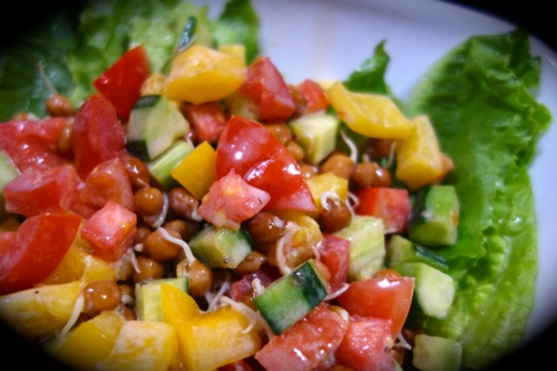 インド生活10年のうちの変化の中で、歓迎すべきことのひとつは、オーガニックの野菜を入手できる店が増えたこと。むろん、これは先週の多忙時、買い物に行けなかったときに利用したBigbasket.comで注文したイエローペッパーやローマイン・レタス、発芽したひよこ豆など。