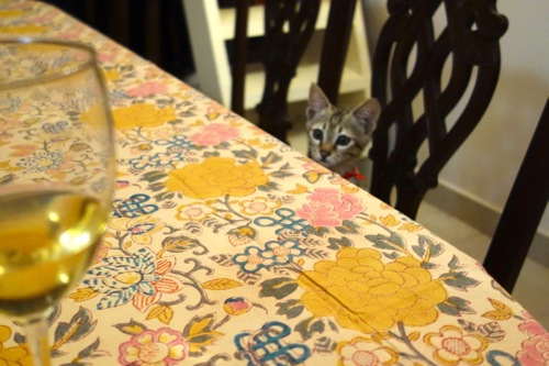 ワイングラスを狙っているわけではなさそうだ。
