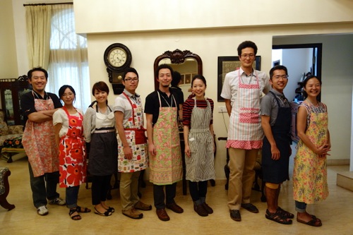 調理実習恒例のエプロン姿で記念撮影。男性5名、女性5名(わたしも含め)の計10名。