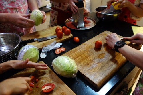■今回もまた、体育会系調理実習。盛りだくさんのメニューを、次々に。