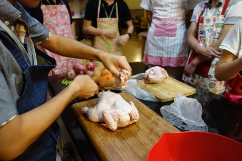 まずは、毎回恒例の「丸ごとチキン捌き」で、鶏肉の構造を理解しつつ、カレー用の肉を準備。