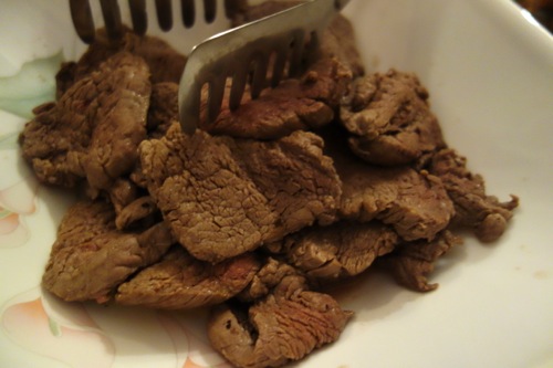 フライパンにバター敷いて、焼く。冷凍肉でもないのに、いつもより水分が多く出て旨味が逃げてしまった気がする。たまにこんなことがある。表面に小麦粉をまぶして味を封じ込めた方がよかったかもしれない。あるいは片栗粉をまぶしておいて、中華風の味付けなど。