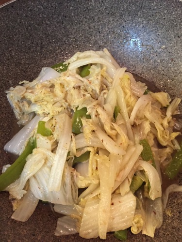 野菜は、白菜の煮浸し。お手軽。そして炊きたて日本米。夫が米国から大量に「田牧米ゴールド」を買って来てくれるというので、惜しみなく日本米が食べられる。幸せ。