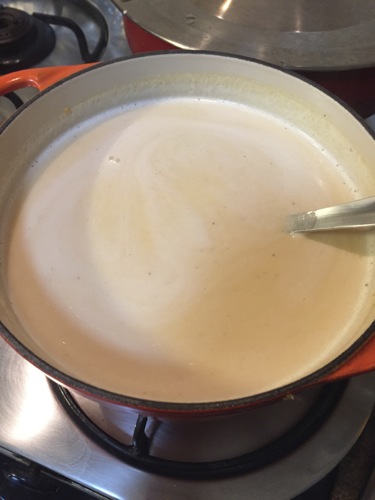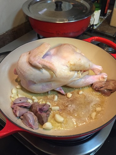 この日はオーヴンを使わず、コンロで調理したけれど、オーヴンにもぎりぎり入るサイズなので、こんがりと焼きたい時には、途中から蓋を取って焦げ目をつければよい。