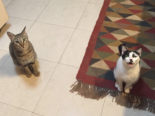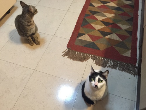 魚を焼き始めると、猫らがぐいぐい、やってくる。