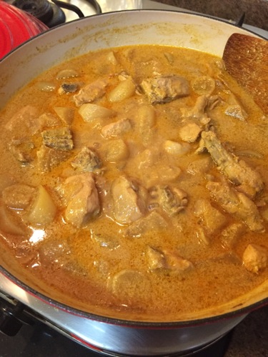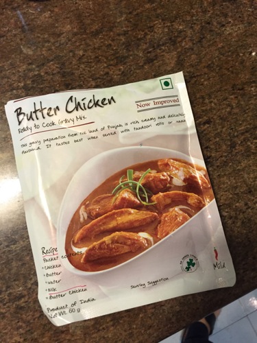 いつもは、ひよこ豆用のスパイスミックスがお気に入りでよく使うが、今日はバターチキンを。レシピに半分従い、半分スルーし、適当に。この日は日本米を食べたかったので、日本風にするために、小麦粉でとろみをつけた。