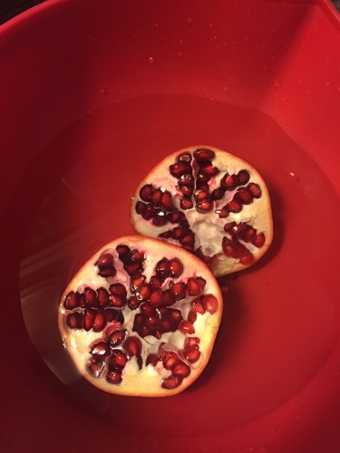 あとは浄水を張ったボウルに入れて、汁が飛び散らないように丁寧に割ってほぐすだけ。今まで縦に切れ目をいれていたのだが、横にしたほうが、遥かに実が落ちやすい。そういう風に、できているらしい。