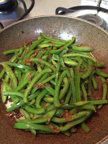 オーガニックのピーマンは歯ごたえも風味も抜群。これは和食がメインの日、鰹節をトッピングして軽く酒としょうゆで味付け。ヘルシーなおつまみとしてもいい。