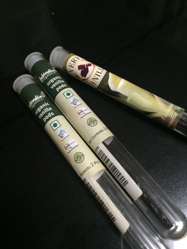 普段使っているのは、このヴァニラビーンズ。先進諸国では高価だが、インドではお手頃価格で、オーガニックものも手に入る。