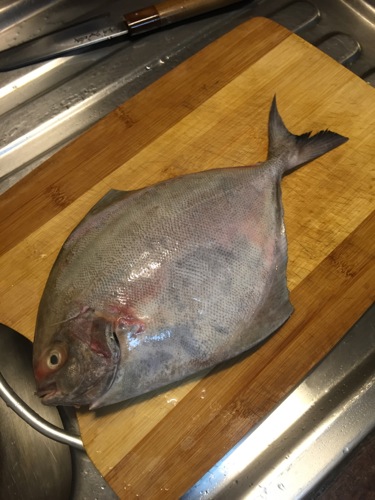 急に親戚の伯父が夕食に。この日、Freshtohome.comからブラック・ポムフレットを注文していた。丸ごと煮付けにして二人で食べるつもりだったが、ゲスト来訪だと食べにくいこともあり、切る。