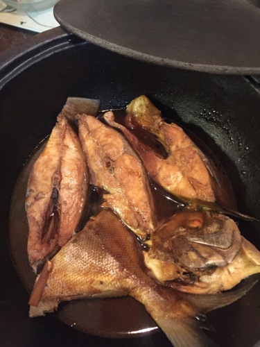 マニプールの石鍋で、煮付けにする。