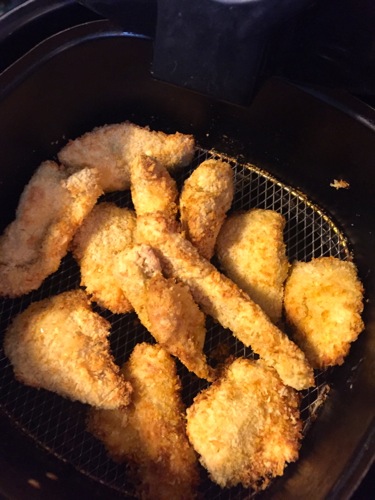 チキンスープを作る時に切り分けていた胸肉の部分を、エアフライヤーで、フライにする。猫用に取っておいたのだが、人間が食べることにする。