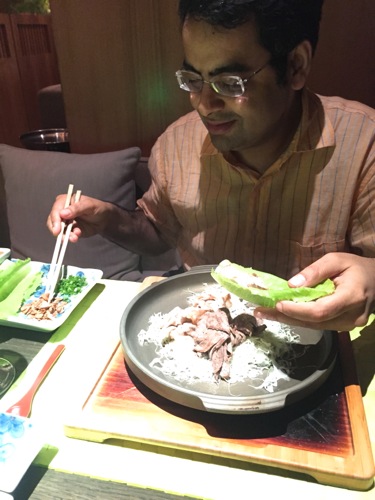 ちなみにこのレストランのセールスマネージャーは、かつてムンバイのタージマハル・ホテルにある超高級日本料理レストランWASABIに勤務していたとのことで、前回、今回と、なにかと夫もフレンドリーに話をする。わたしも、ついつい、何かしら語る。