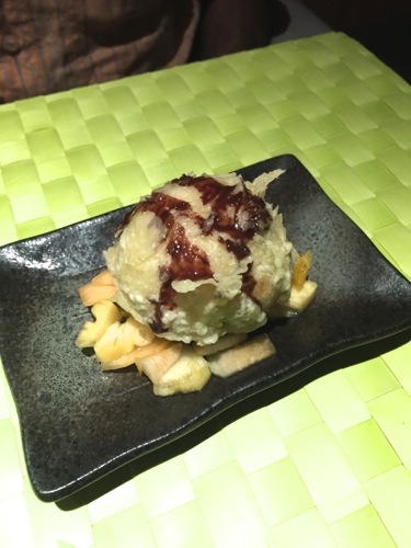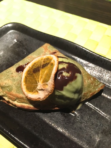 そしてデザート。わたしは抹茶アイスクリームのクレープ、夫は抹茶アイスクリームの天ぷらを注文。互いに味見をしたところ、二人してクレープの方が好みで、わたしのクレープは結局、半分近くを夫に奪われる羽目になったが、仕方あるまい。