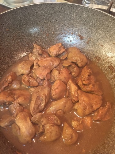 チキンのレヴァー。まとめて調理して、何度かにわけて食べる。