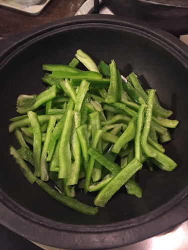 なぜか調理中の一枚しかないが、オーガニックのピーマン。細く切って、マニプールの石鍋で炒める。この石鍋は、野菜を本当に色鮮やかにおいしく仕上げてくれる。軽く醤油を垂らして、鰹節をまぶしたりすれば、それだけで炊きたてご飯がおいしく食べられる。このとき、ほかにあったはずのおかずは、思い出せない。