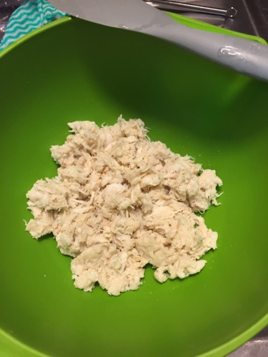 こちらがカニ肉。レシピは、アメリカのサイトのものを眺めつつ、適当に創造。