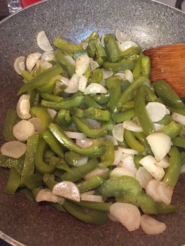 野菜は、残り物の大根(しょぼい感じ)とピーマンをまとめて炒める。