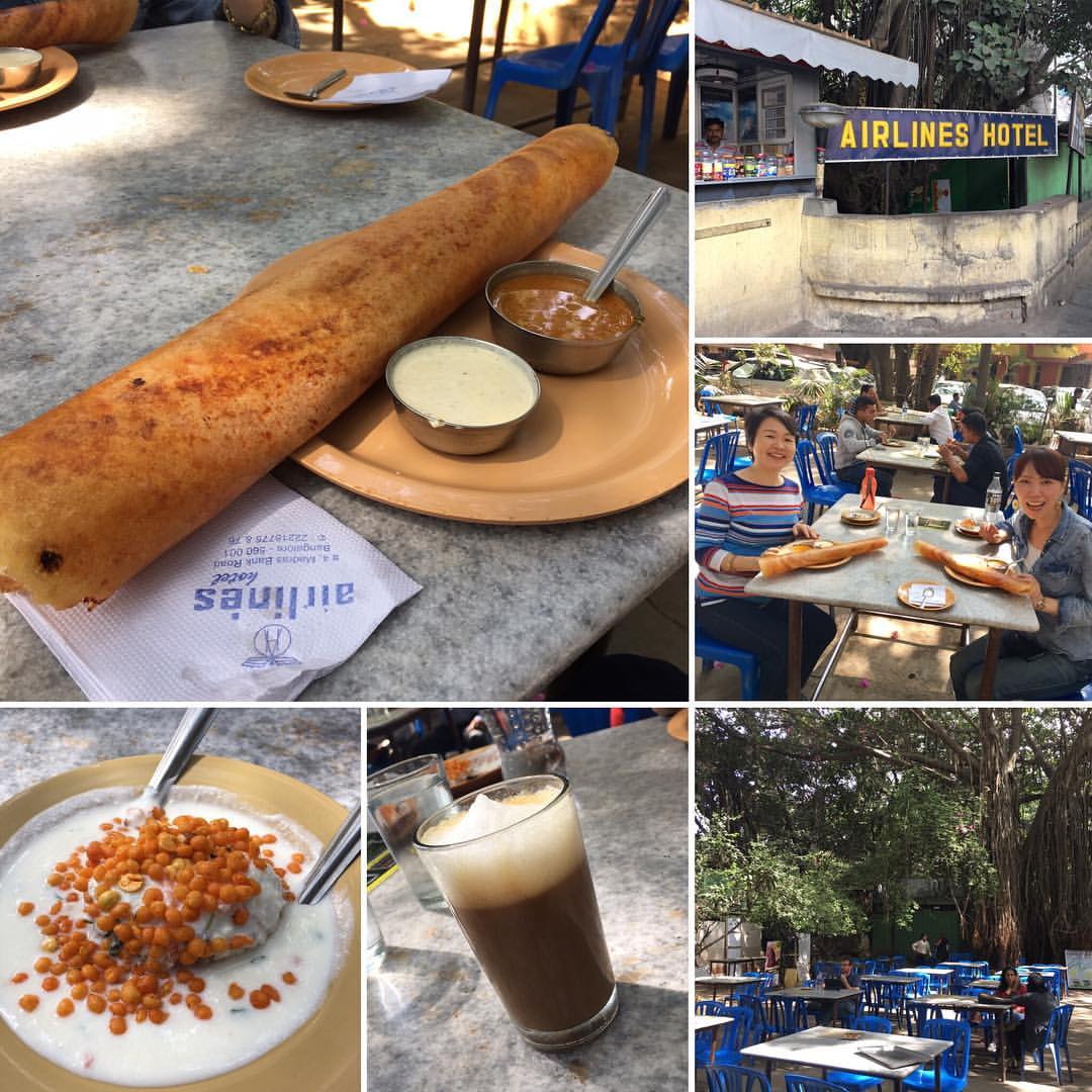 久しぶりのローカルフード探検! エアラインズ・ホテルにて、ペーパー・マサラドサを食す。薄いからこそのペーパーのはずなのに、分厚くて食べ応えありすぎ。ほんのり甘めのサンバル、風味のよいココナツチャツネもおいしくて、ほぼ完食。