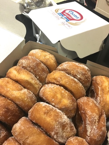 バンガロールの老舗商店、便利すぎるThom’s Bakeryのドーナツ。1個10ルピー。20円に満たず。ブラヴォー!